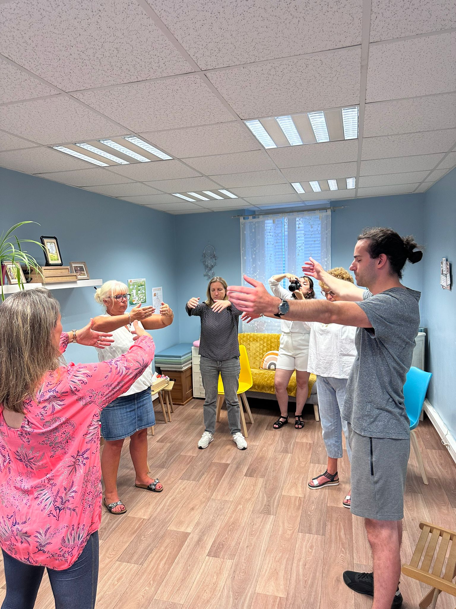 Formée au protocole du Yoga du Rire mis au point par un médecin en Inde, Dr Madan Kataria en 1995, sur la base d’études médicales sur le rire.